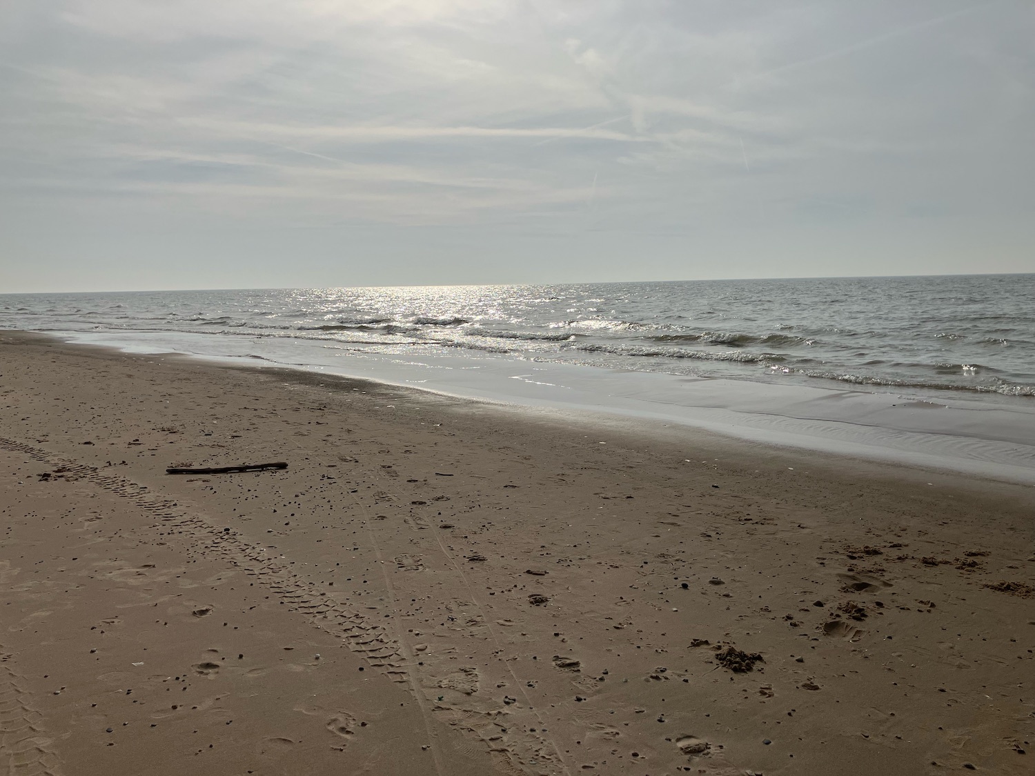 Before me rippled the vast freshwater sea from a different vantage point than usual. So odd to be on this side. Sand, but no dunes here; they are formed through the actions of the water and the prevailing westerly winds across the Lake. Ah, the swoosh and lapping of the waves does me much good.